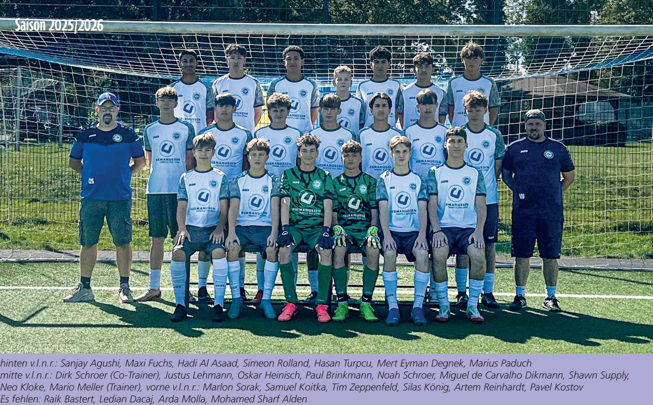 B-Jugend (Jahrgang 2009/2010) Trainer Mario Meller01514-0125077 Dirk Schroer0151-23097621 TrainingszeitenMontag18:00 – 19:30 UhrDonnerstag18:30 – 20:00 Uhr