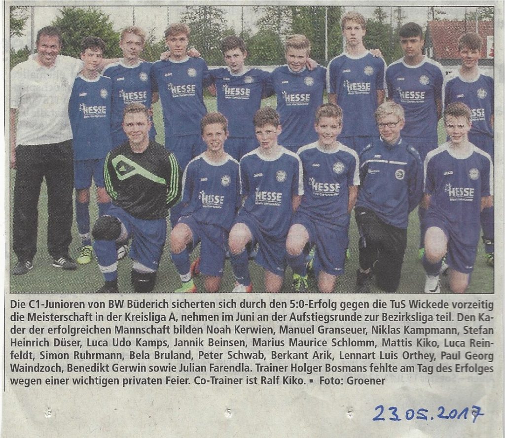 Im letzten Heimspiel der Saison pilgerten viele Zuschauer ins Bruchbachstadion. Die zweite Mannschaft von Blau Weiß Büderich machte im Vorspiel den Aufstieg in die C-Liga perfekt. Unser Gast aus Ostinghausen erwischte in der Anfangsphase den besseren Start und erzielte in der 5. Minute die 1-0 Führung. Von dem frühen Schock erholten sich die Büdericher und […]
